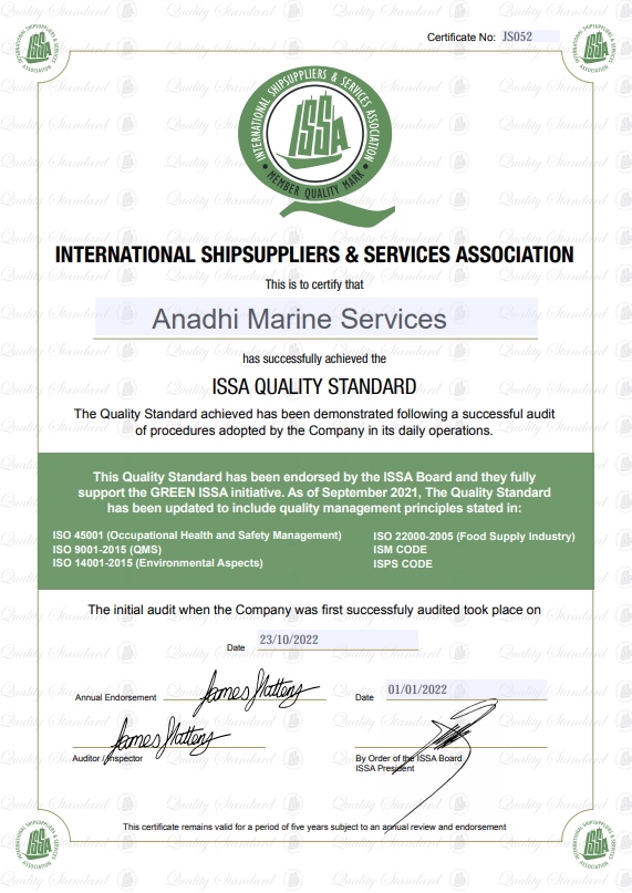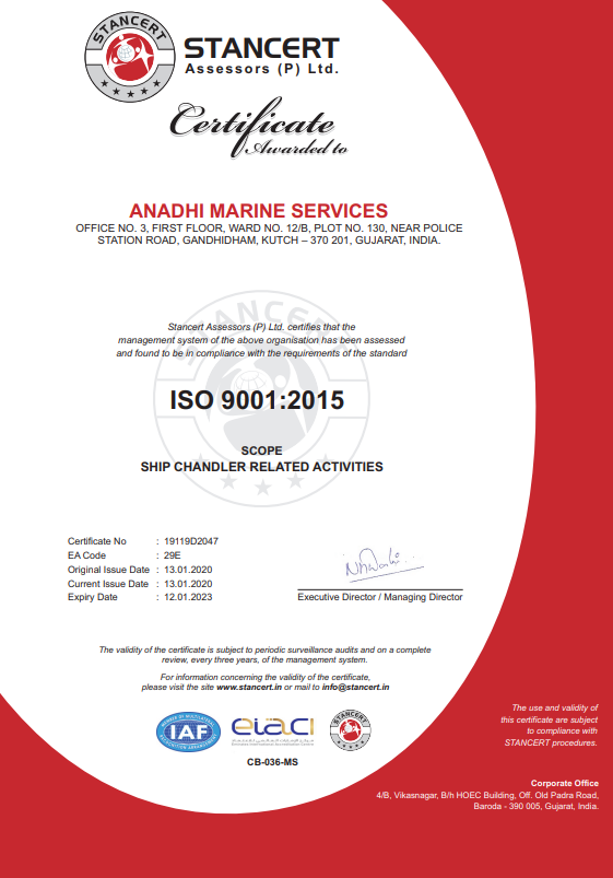 Anadhi Marine Services is a part of Anadhi Shipping Services. We have been in the shipping business since 2009 and are at the forefront when it comes to Maritime Ship Repairing & Chandling services. We are located in Gandhidham City, near Kandla Port in the Kutch district of Gujarat, India, and are capable of providing a variety of services for all kind of vessels including, dredgers, tankers, etc., at all Indian ports.